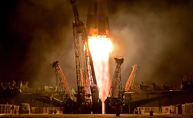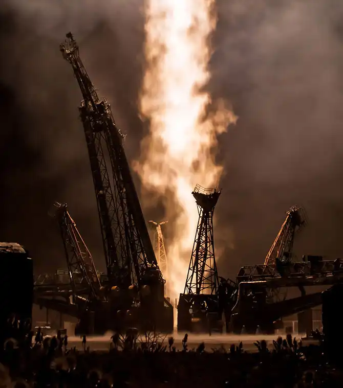 Поехали! Старт космического корабля «Союз ТМА-09М» с космодрома Байконур, 29 мая 2013.