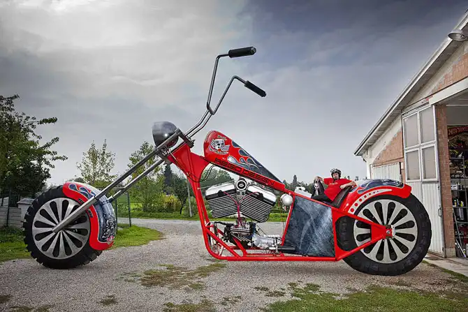 Фабио Реггиани из Италии построил самый большой в мире мотоцикл высотой 5.10 метров (от земли до верхней части руля). Это в 6 раз больше, чем нормальный мотоцикл. Весит этот гигант около 5 тонн.