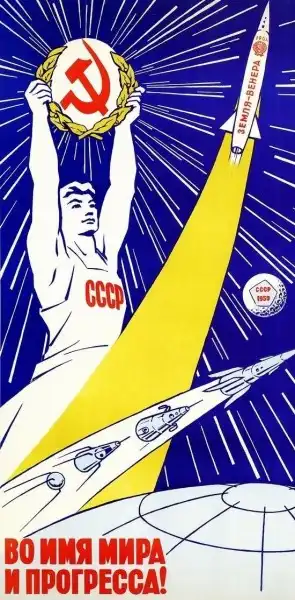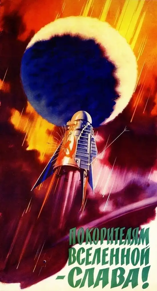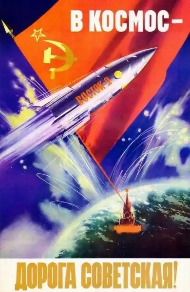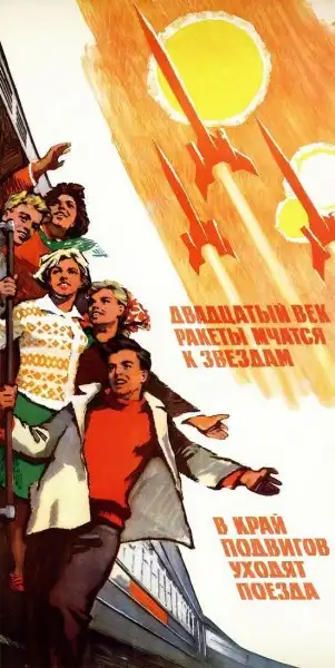 В далекие 1958-1963 годы для русского человека появился еще один инструмент для мотивации - космос. На тот момент СССР уверенно выигрывал космическую гонку у Америки, следствием чего стала эта коллекция мотивационных постеров.