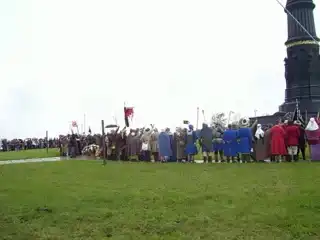 на поле Куликовом, что в Тульской области. Что произошло на этом поле 633 года назад думаю лишний раз говорить не стоит ( тот кто не знает этого момента истории своей страны может "загуглить", в инете масса информации про это). Погода подвела, но все равно было зачетно, Единственное не удалось мне посмотреть реконструкцию битвы (пришлось уезжать в силу сложившихся обстоятельств) русских войск с войсками Орды, тем более сегодня впервые в реконструкции приняла участие конница. На поле 21 сентября приняли присягу молодые бойцы, была проведена литургия по павшим бойцам и проведено вручение правительственных наград военным, полицейским и работникам оборонной промышленности (мне тоже перепала медалька из рук губернатора Тульской области))). Приношу извинения за качество фотографий и видео.