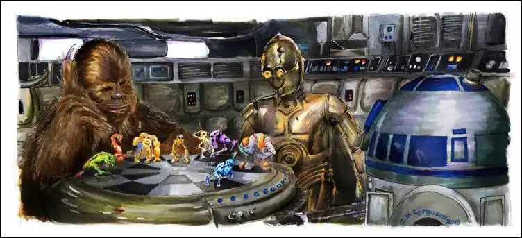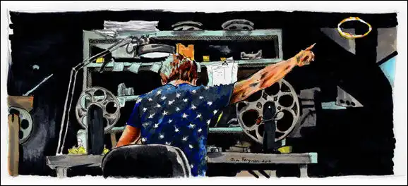 Художник Джим Фергюсон рисует хорошо знакомые любому киноману сцены из известных фильмов.