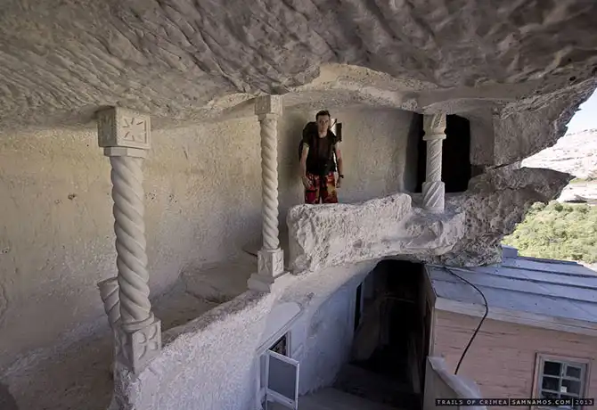Место стоит внимания. Прямо в отвесном срезе скалы выдолблены гроты, в которых размещаются кельи монахов:
