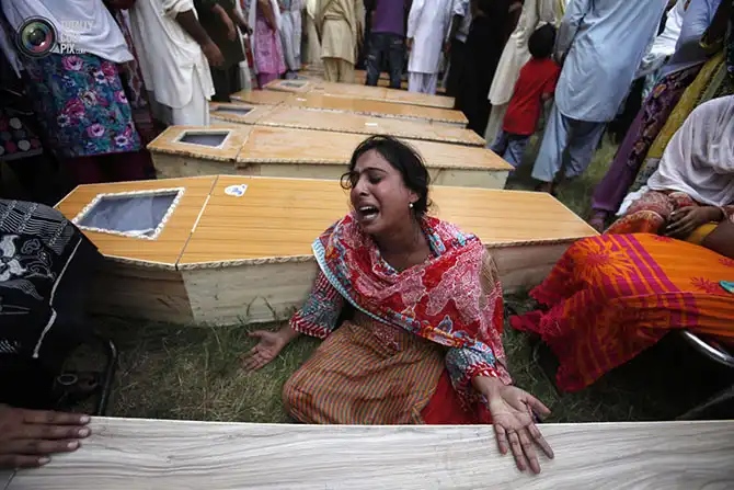Христианка плачет у гроба своего брата, который погиб в результате теракта в Пешаваре, Пакистан.