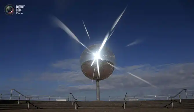 Сфера блестит на солнце на набережной в городе Блэкпул, Англия.