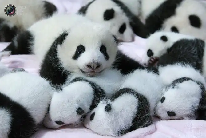 Новорожденные детёныши большой панды находятся в центре разведения в Чэнду, Китай.