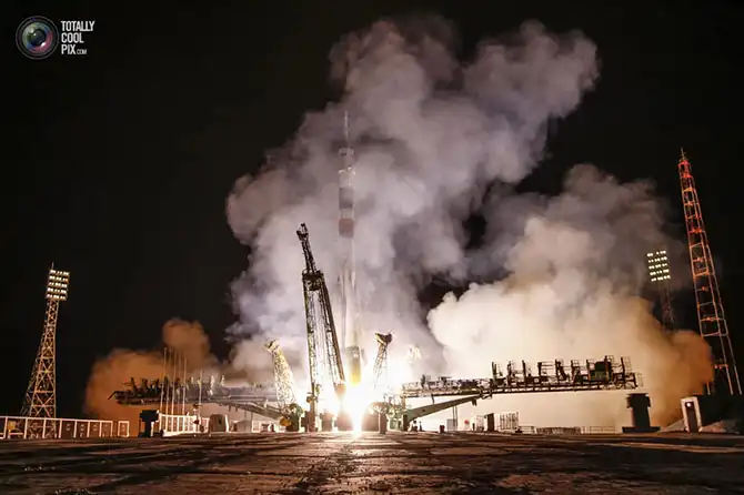 Ракета Союз TMA-10M стартует с космодрома Байконур.