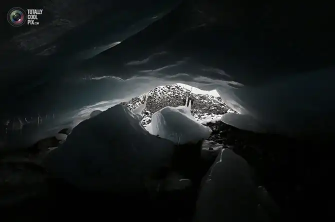 Пещера в леднике Гласиар Пасторури в Уарасе, Перу.
