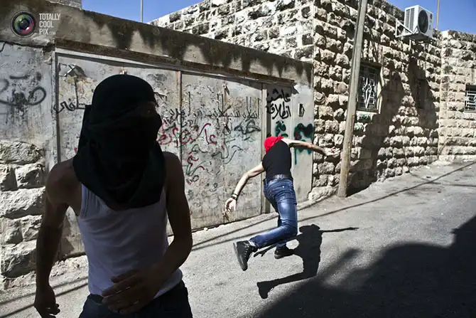 Палестинские подростки бросают камни во время столкновений с израильской полицией после пятничной молитвы в восточной части Иерусалима.