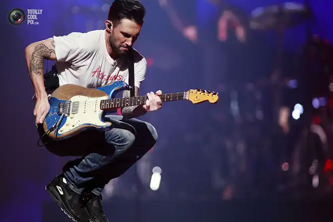 Лидер группы Maroon 5 Адам Левин выступает на музыкальном фестивале iHeartRadio Music Festival в Лас-Вегасе, США.