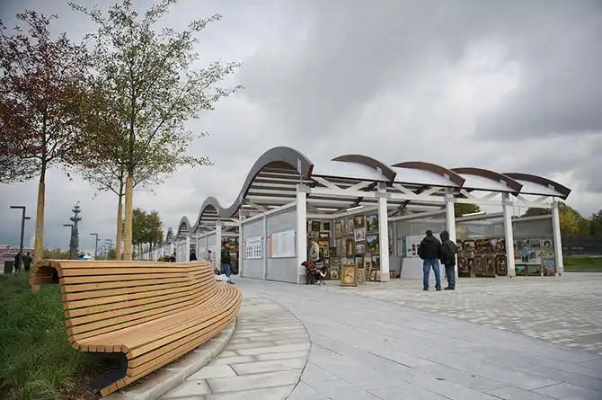 Торговцам картинами построили нормальные павильоны. Раньше они продавали свою мазню на металлических сетках под дождем. Кстати, пользуясь случаем, хочу сказать, что продавали тут всегда редкостное г…о. К живописи это отношение не имеет.