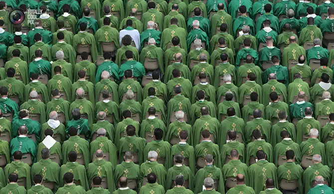 Священники посещают мессу Папы Франциска на площади Святого Петра в Ватикане.