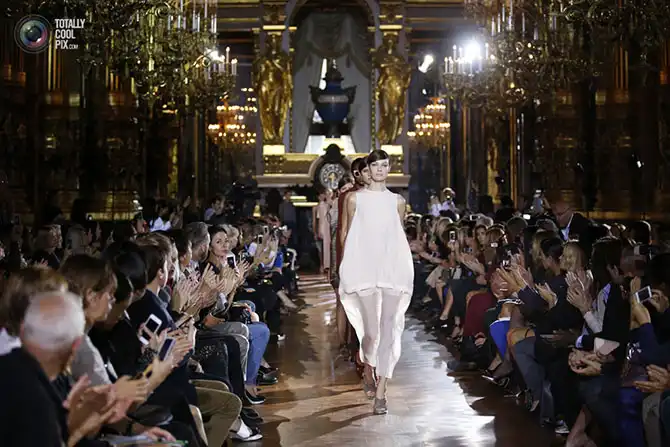 Модели демонстрируют наряды из коллекции весна/лето 2014 британского дизайнера Stella McCartney на Неделе моды в Париже.