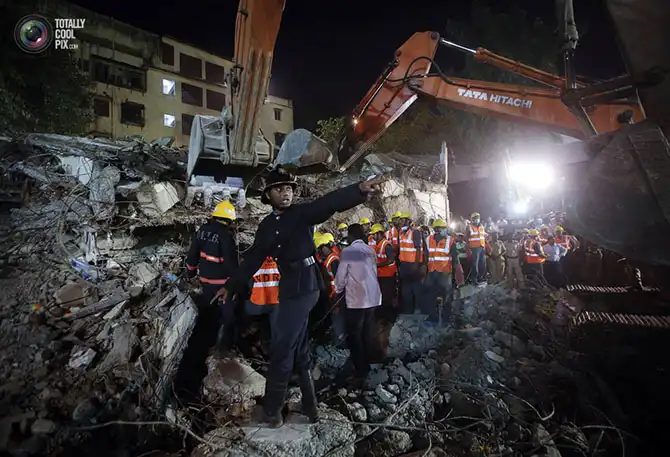 Спасатели ищут выживших на месте обрушения жилого дома в Мумбаи, Индия.