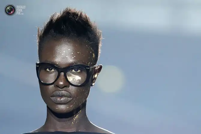 Модель демонстрирует наряд из коллекции весна/лето 2014 дизайнера Vivienne Westwood на Неделе моды в Париже.