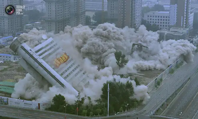Снос здания метеорологической станции провинции Ляонин в Шэньяне, Китай.