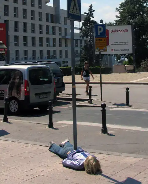 Марк Дженкинс - странный художник, создающий человеческие чучела при помощи клейкой ленты и полиэтилена. Эти чучела он помещает в городах и следит за реакцией окружающих.