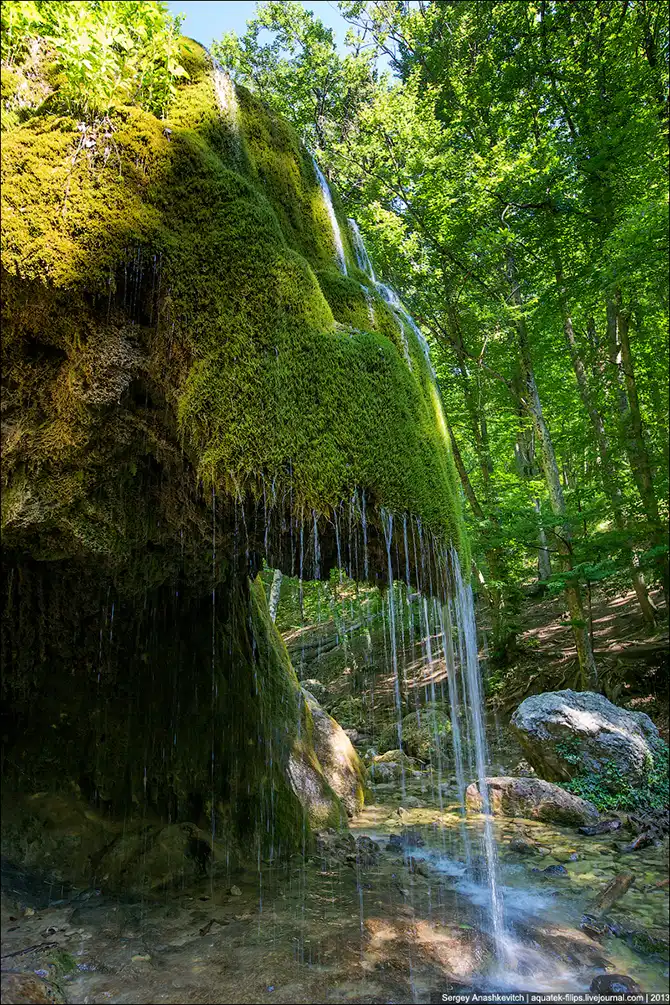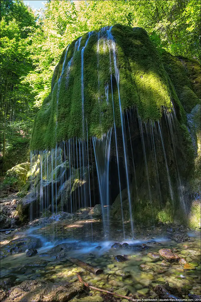 С разных ракурсов водопад Серебряные Струи напоминает каких-то мифических животных