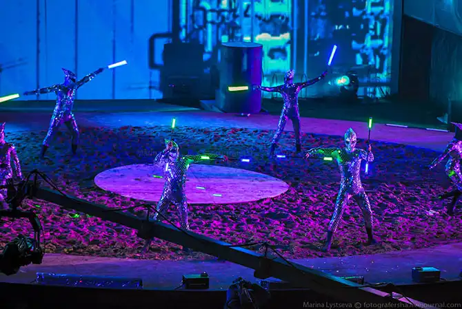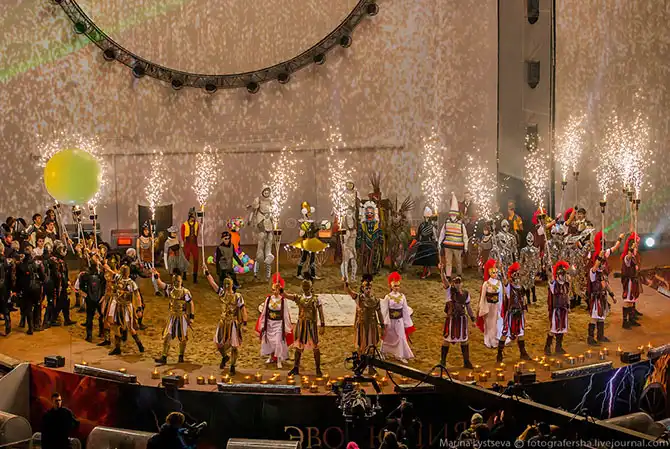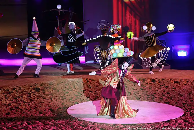 В начале было приветственное слово от руководства Москвы и началось шоу, в котором приняли участие драматические актеры, музыканты, артисты цирковых жанров, певцы, хоры и многие другие.
