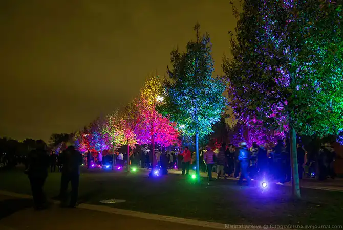 Все деревья вдоль аллеи весело светятся толерантными красками:
