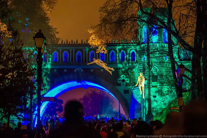 Международный фестиваль «Круг света» — это уникальный проект, позволяющий раскрыть привычный облик Москвы в новом свете, в рамках которого светодизайнеры и профессионалы в области 2D и 3D графики используют архитектурное пространство города, как объект для мультимедийных и световых инсталляций.