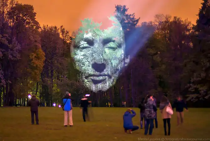 Проекций на деревьях. Жутковато как-то, если не знать, что это в рамках шоу-программы: