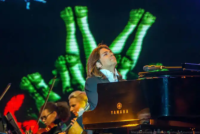 Ну а главным событием вечера стал часовой фортепьянный концерт Pianomania от Дмитрия Маликова. Композитор и певец за пару часов до начала написал в своем твиттере «Ребята ! Прохладно. одевайтесь теплее, возьмите по 50 грамм для сугреву, и к нам, в Царицыно, начнем в 20-30)))»:
