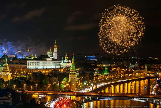 А вот так всю красоту было видно со смотровой площадки. На фоне повального «совка» и безвкусицы многочисленных московских праздничных мероприятий, фестивальное представление выглядело хорошо сделанной работой.