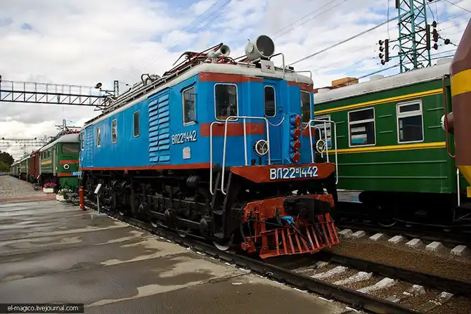 Владимир Ленин, осевая нагрузка 22тс, модернизированный. Выпускался с 47 по 68 года. До сих пор 12 таких используются в Челябинске на ТЭЦ-2 и металлургическом комбинате. Мне этот электровоз показался похожим на паука — много глаз, окна, красные круглые заглушки, фары, а снизу клешни