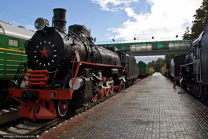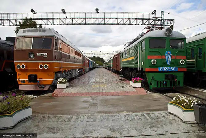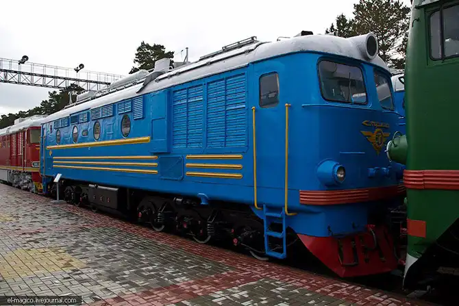Слева — опытный тепловоз ТЭП80, построенный в Коломенском тепловозостроительном заводе. Всего их 2 модели. Вторая в ЖД-музее Санкт-Петербурга. Примечательна эта модель тем, что в 1993 году на питерском тепловозе был зарегистрирован скоростной рекорд среди всех тепловозов на свете — 271 км/ч. А справа — Владимир Ленин 23, пришедший на замену «пауку». В силу простоты конструкции считались самыми надёжными электровозами в 60-80х годах: