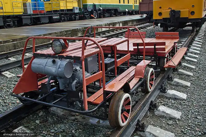 Видя такие дрезины, мне почему то сразу вспоминаются приключения Индианы Джонса. В какой-то из серий он на вагонетках катался в шахтах. Прекрасно понимаю, что в шахтах пути поуже, да и вагонетки другие, но ассоциации есть ассоциации