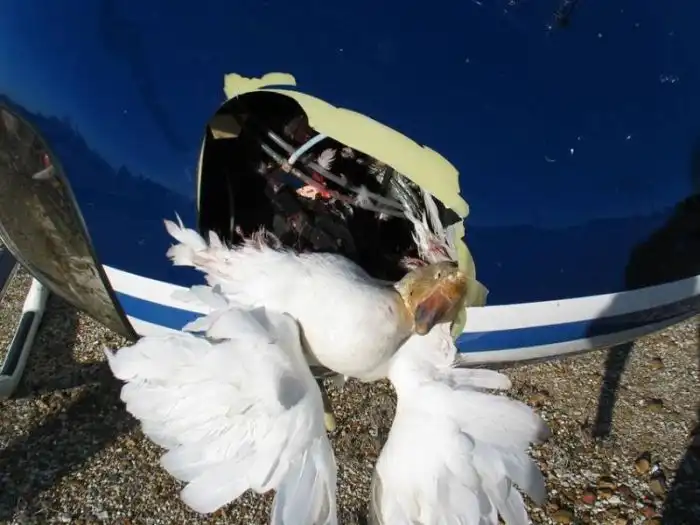 Сегодня я хочу показать вам, насколько опасной для вертолета может оказаться неожиданная встреча в небе со стаей птиц.. Я даже и не ожидал, что повреждения будут настолько серьезными. К счастью, пилот медицинского вертолета смог удачно посадить поврежденный вертолет.