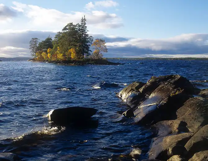Северная Карелия, берег Белого моря в октябре. Если бы не жёлтая трава, на фото было бы лето.