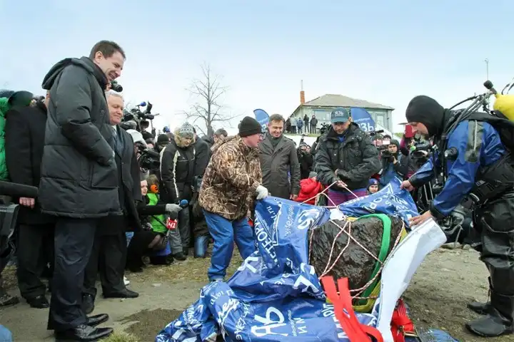 Из озера Чебаркуль подняли самый большой осколок челябинского метеорита