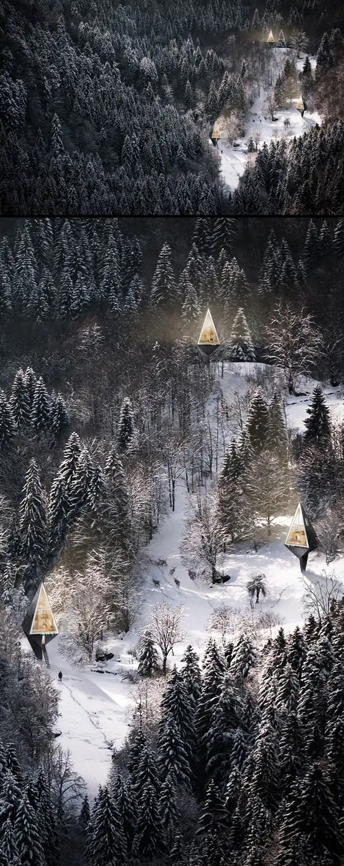 Не знаю, кто как представляет себе "первобытное жилище", но автор одноименного проекта, студент-дизайнер Конрад Войчик считает, что для жизни всем нам подойдут вот такие эко-дома из дерева и стекла вместимостью от 2 до 4 человек, располагающиеся прямо посреди леса. Они должны функционировать полностью автономно и не наносить вред окружающей среде.