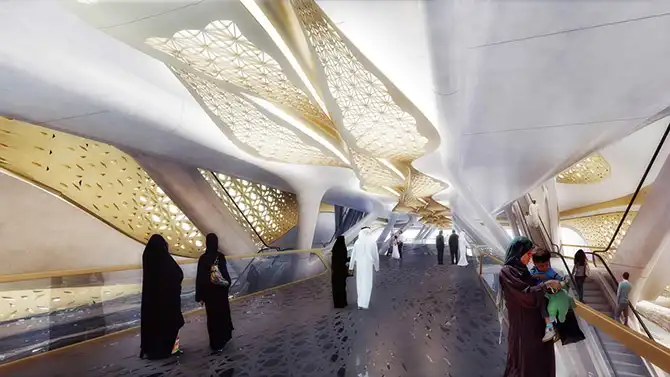 Проект станции метро Король Абдула в Саудовской Аравии, сделанный студией Захи Хадид