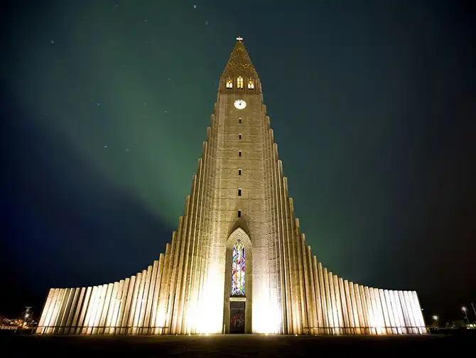 Хатльгримскиркья возвышается на 74 метра, что делает ее самым высоким зданием в Исландии. Ее дизайн должен напоминать текущую лаву вулкана. Церковь стала одной из главных достопримечательностей Исландии. Церковный орган составляет 13 м в высоту и весит более 25 тонн.
