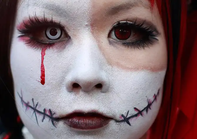 Участница Хэллоуин-парада позирует фотографу в Кавасаки к югу от Токио, Япония, 27 октября. Парад посетили около 3 тысяч участников и более 110 тысяч зрителей.