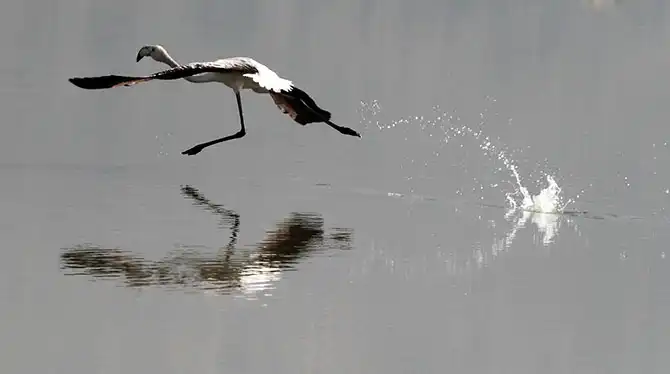 Фламинго взлетает в лагуне недалеко от Месолонгиона на западе Греции, 13 октября.