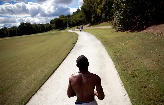 Мужчина совершает пробежку в парке Пьедмонт-парк в Атланте, штат Джорджия, 14 октября.