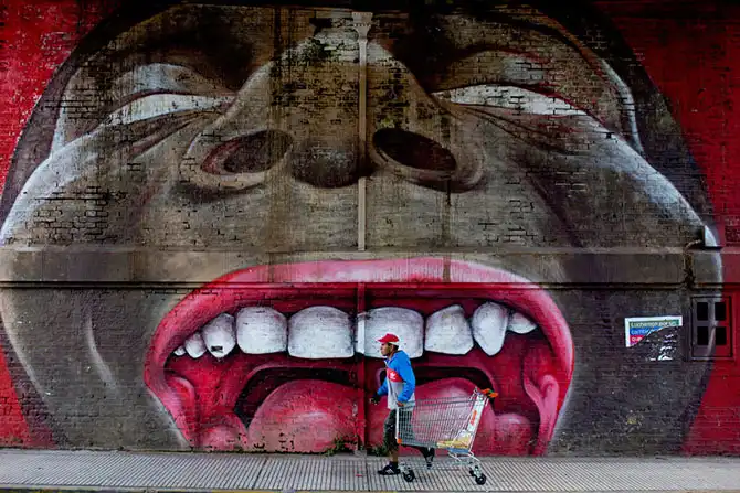 Мужчина проходит мимо граффити «Pelado» авторства Альфредо Сегатори (Alfredo Segatori) в Буэнос-Айресе, Аргентина, 21 октября.