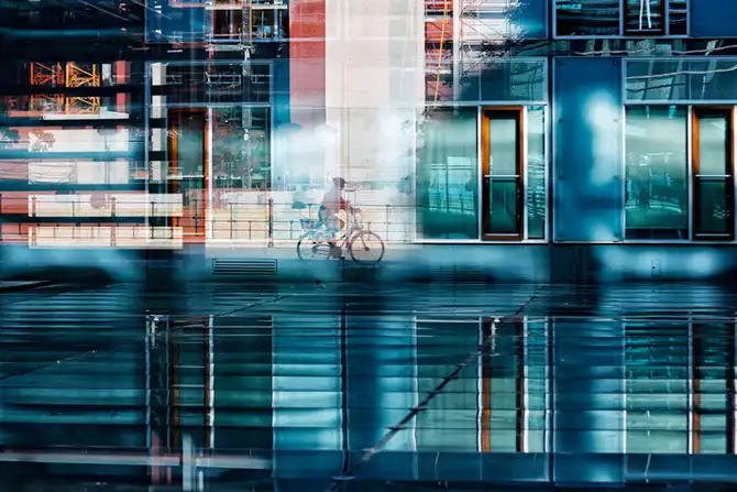 Женщина едет по набережной реки Шпрее в Берлине, Германия, 14 октября.