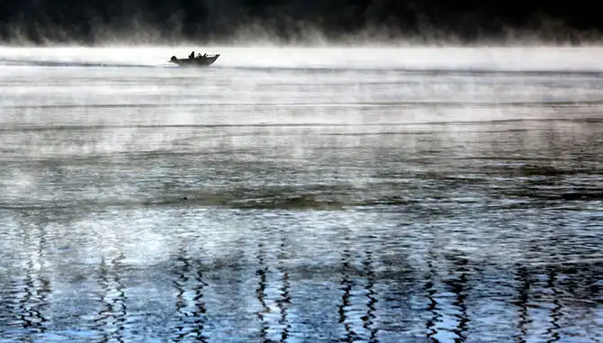Рыбак плывёт по реке Миссисипи в Дубьюке, штат Айова.