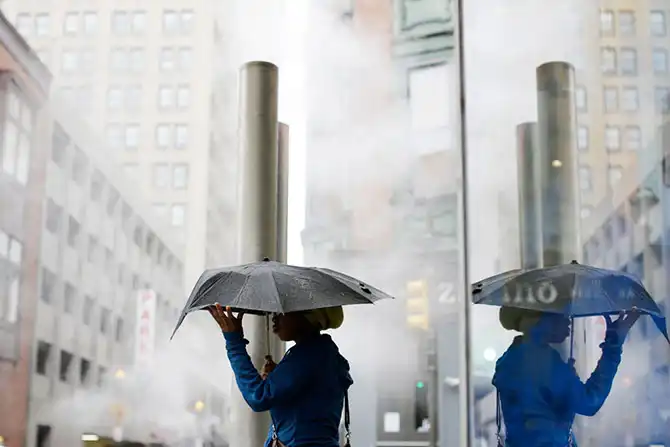 Женщина стоит под зонтом во время дождя в Филадельфии, штат Пенсильвания, 11 октября.