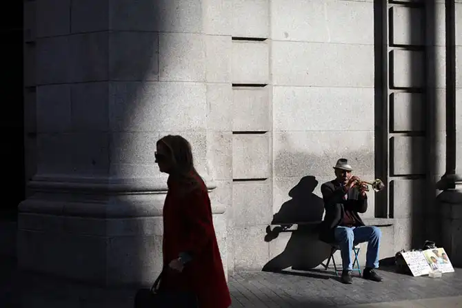Мужчина играет на трубе на улице Гран-Виа в Мадриде, Испания, 31 октября.