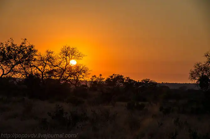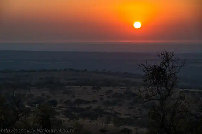 Раннее утро над саванной. В низинах собирается холодный туман.
