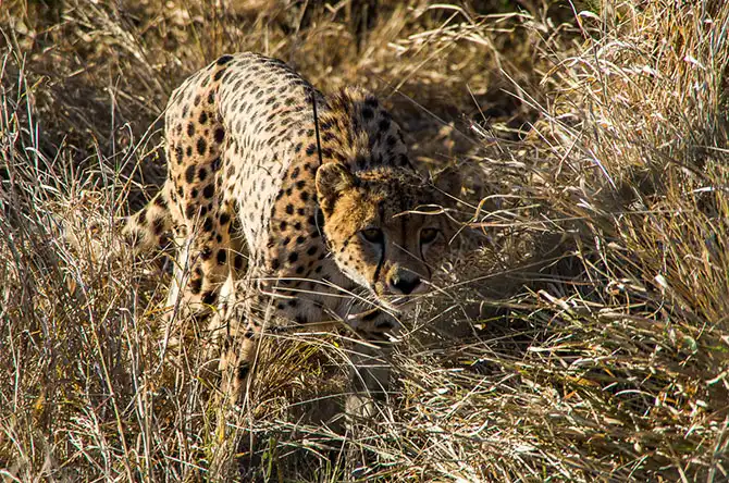На шее у гепарда новый вид ошейника, придуманный Крисом Келли из Wildlife Act. Шипы защищают животное от удавок и капканов, которые ставят браконьеры на антилоп из ближайших к заповеднику сел. Гепарды или собаки регулярно попадают в эти капканы и часто это заканчивается трагически. Удавка затягиваясь на ошейнике не соскальзывает на шею, а задерживается шипами.