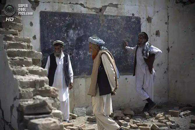 Афганцы на месте разрушенной школы. Будьяли, Нангархар. 19 марта 2013 года.