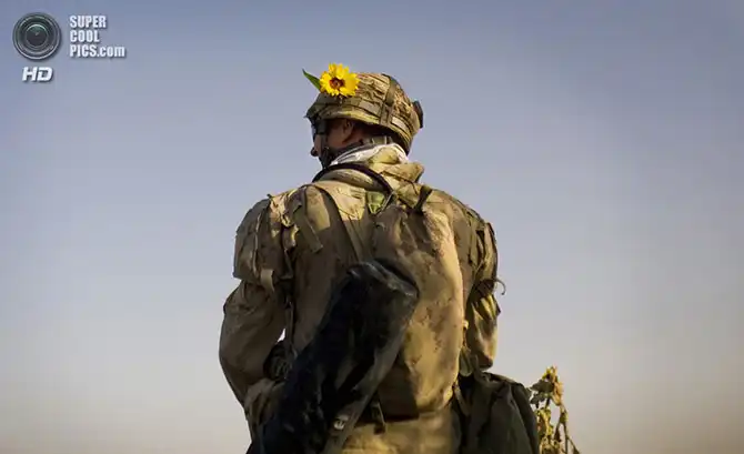 Немецкий солдат с амулетом на бронежилете наслаждается сигарой во время прибытия с патруля обратно на базу. Во время этой операции его группа попала под сильный огонь противника, несколько солдат были ранены. Афганистан. Фейзабад, Кундуз. 11 сентября 2009 года.