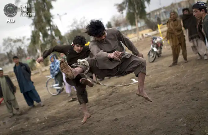 Афганцы сражаются друг с другом с помощью стропов в парке. 11 февраля 2011 года.