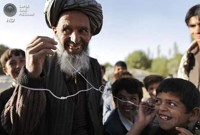 Афганцы слушают музыку с iPod немецкого солдата. Фейзабад, Кундуз. 15 сентября 2009 года.